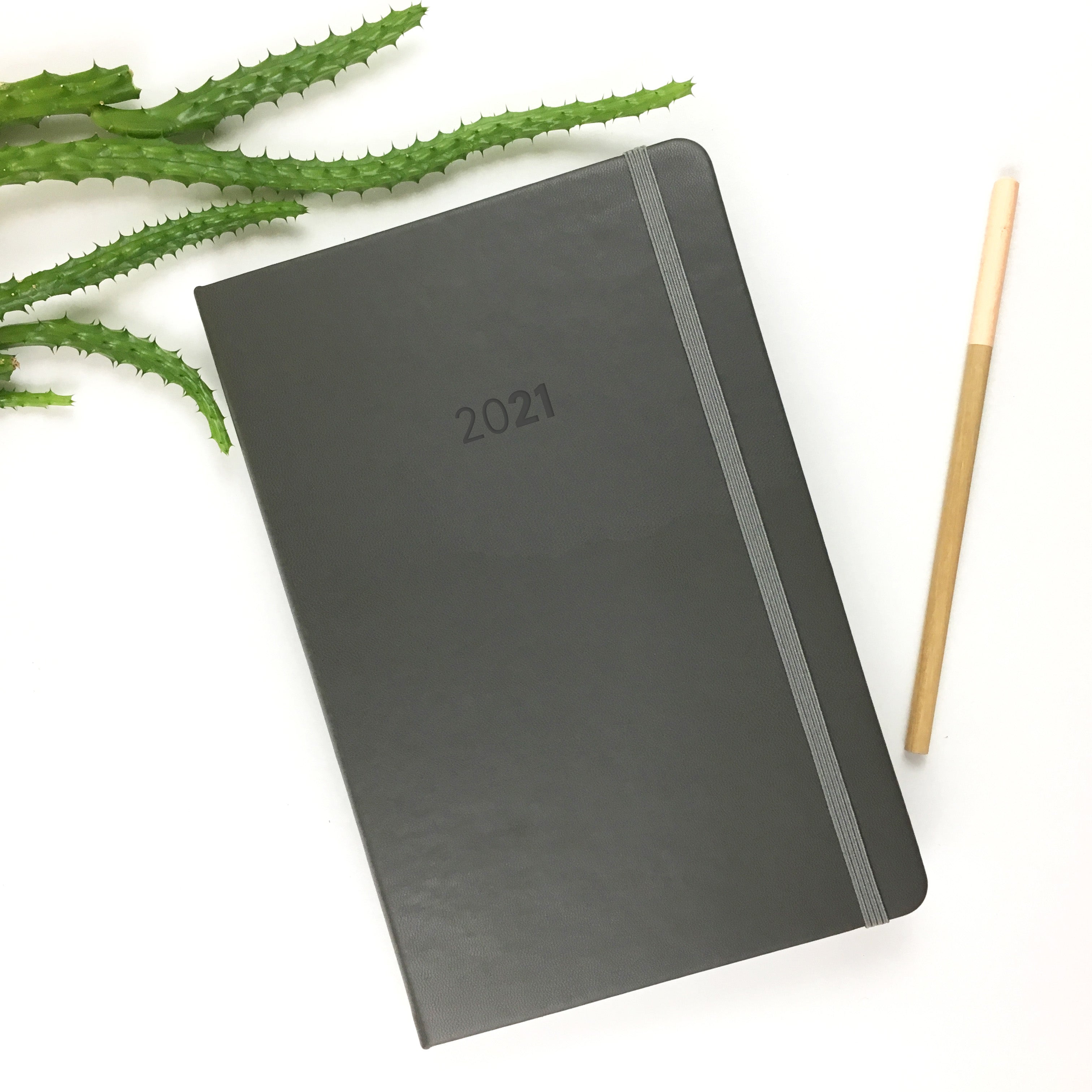- Gray or Brown elastic closure band to aid in portability and durability of planner.